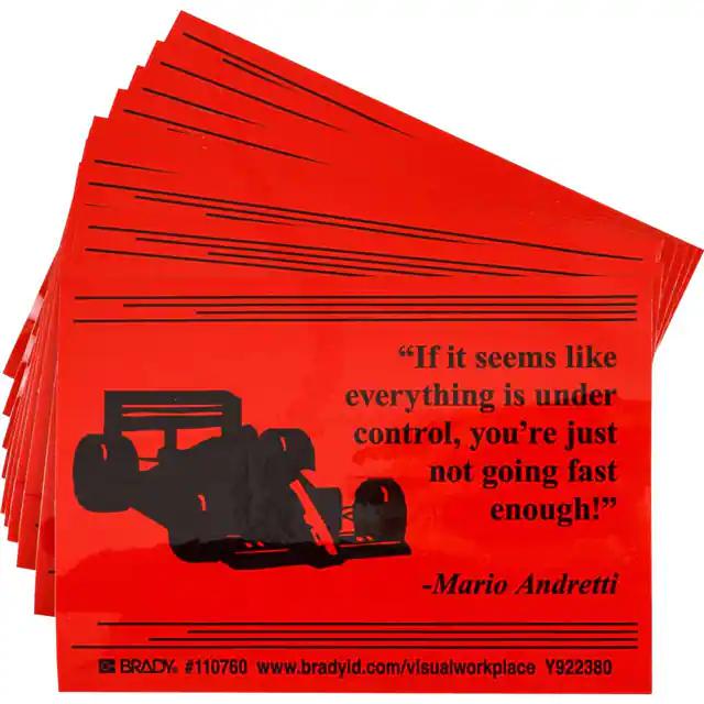 This is manufactured by Brady Corporation. The manufacturer part number is 110760. Label with a size of 5.00" l x 3.50" w (127.0mm x 88.9mm). The product is rohs3 compliant. It is assigned with possible HTSUS value of 3919.90.5060. It is shipped in bulk. It has a classic black legend, red background colour. The product brady®, is a highly preferred choice for users. The product is made from highly stable and reliable polyester. In addition, it is reach unaffected. Its typical moisture sensitivity level is not applicable. A bespoke label is a if it seems like every thing is under control, you're just not going fast enough -mario andretti label. It has a long 4 weeks standard lead time. The product is designated with the ear99 code number