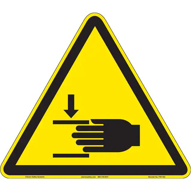 This is manufactured by Clarion Safety Systems. The manufacturer part number is FIS1105-MVFAA. Label with a size of 20.70" l x 18.00" w (525.8mm x 457.2mm). The product is rohs non-compliant. It is assigned with possible HTSUS value of 3920.49.9000. It is shipped in box. It has a classic black legend, yellow background colour. The product mv, is a highly preferred choice for users. The product is made from highly stable and reliable vinyl. In addition, it is reach affected. Its typical moisture sensitivity level is 1 (unlimited). A bespoke label is a hand crush/force from above label. The product is suitable for use with warning. The product is designated with the ear99 code number