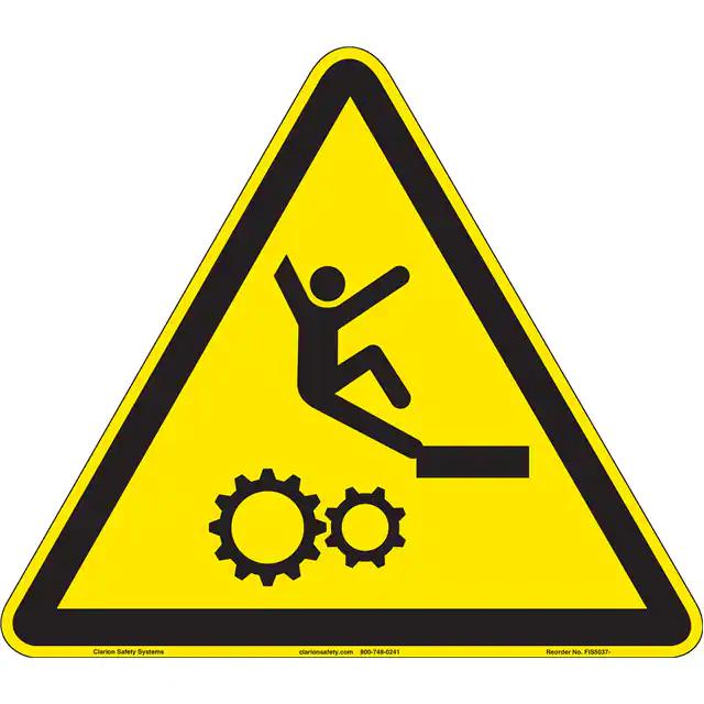 This is manufactured by Clarion Safety Systems. The manufacturer part number is FIS5037-MVFA8. Label with a size of 11.50" l x 10.00" w (292.1mm x 254.0mm). The product is rohs3 compliant. It is assigned with possible HTSUS value of 3920.49.9000. It is shipped in box. It has a classic black legend, yellow background colour. The product mv, is a highly preferred choice for users. The product is made from highly stable and reliable vinyl. In addition, it is reach unaffected. Its typical moisture sensitivity level is 1 (unlimited). A bespoke label is a body fall into gears label. The product is suitable for use with warning. The product is designated with the ear99 code number