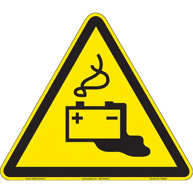This is manufactured by Clarion Safety Systems. The manufacturer part number is FIS6097-MVFAA. Label with a size of 20.70" l x 18.00" w (525.8mm x 457.2mm). The product is rohs3 compliant. It is assigned with possible HTSUS value of 3920.49.9000. It is shipped in box. It has a classic black legend, yellow background colour. The product mv, is a highly preferred choice for users. The product is made from highly stable and reliable vinyl. In addition, it is reach unaffected. Its typical moisture sensitivity level is 1 (unlimited). A bespoke label is a battery leak label. The product is suitable for use with warning. The product is designated with the ear99 code number