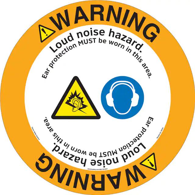 This is manufactured by Clarion Safety Systems. The manufacturer part number is FM163-MPD3Y. Label with a size of 11.00" dia (279.4mm). The product is rohs non-compliant. It is assigned with possible HTSUS value of 3919.90.5060. It is shipped in box. It has a classic black and orange legend, white background colour. The product mp, is a highly preferred choice for users. The product is made from highly stable and reliable vinyl. In addition, it is vendor undefined. Its typical moisture sensitivity level is 1 (unlimited). A bespoke label is a warning/loud noise hazard. ear protection must be worn in this area. label. The product is suitable for use with warning. The product is designated with the ear99 code number