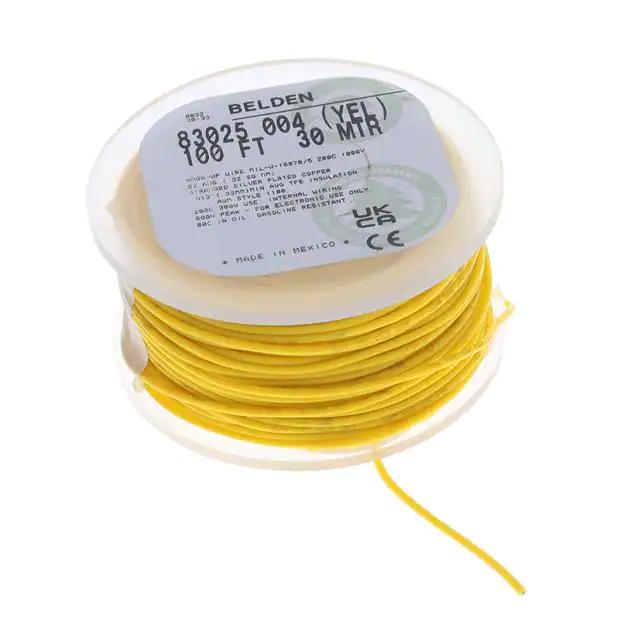 This is manufactured by Belden Inc.. The manufacturer part number is 83025 004100. It is rated with ul style 1180. It is assigned with possible HTSUS value of 8544.49.3080. Its jacket is made from highly insulated tetrafluoroethylene (tfe) materials. It also features a 7/30 conductor strand. In addition, it is reach unaffected. It is shipped in spool. Moreover, the product has a wire gauge of 22 awg. Furthermore, the insulated jacket is a 0.015" (0.38mm) thick. Its typical moisture sensitivity level is not applicable. Its accurate length is 100.0' (30.5m). It has a long 25 weeks standard lead time. The splendid features of the product include high temperature. The diameter of the jacket is 0.060" (1.52mm). The conductor is made from copper, silver coated material. The product mil-w-16878/5, is a highly preferred choice for users. It is a typical hook-up cable. It carries a 300v of voltage. The product is designated with the ear99 code number Moreover, it corresponds to 83025, a base product number of the product. It comes in nice yellow colour.