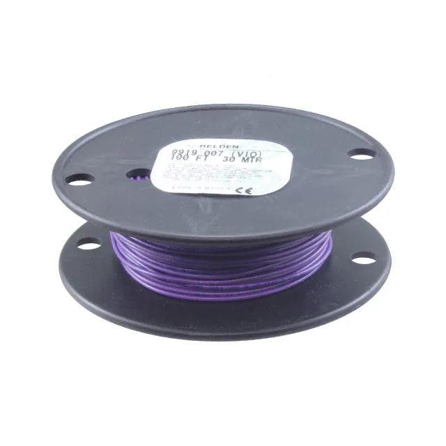 This is manufactured by Belden Inc.. The manufacturer part number is 9919 007100. It is rated with ul style 1007/1569. It is assigned with possible HTSUS value of 8544.49.3080. Its jacket is made from highly insulated poly-vinyl chloride (pvc) materials. It also features a 7/28 conductor strand. In addition, it is reach unaffected. It is shipped in spool. Moreover, the product has a wire gauge of 20 awg. Furthermore, the insulated jacket is a 0.016" (0.41mm) thick. Its typical moisture sensitivity level is not applicable. Its accurate length is 100.0' (30.5m). It has a long 7 weeks standard lead time. The diameter of the jacket is 0.069" (1.75mm). The conductor is made from copper, tinned material. It is a typical hook-up cable. It carries a 300v of voltage. The product is designated with the ear99 code number Moreover, it corresponds to 9919, a base product number of the product. It comes in nice violet colour.
