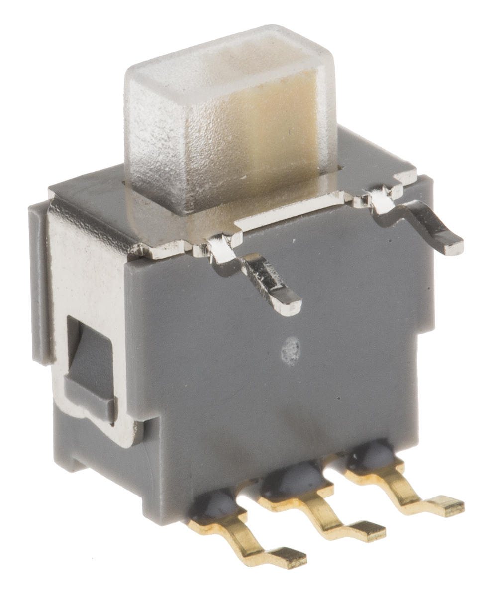 This is IP67 PCB Slide Switch SPDT On-On 400 mA @ 20 V Side manufactured by RS Pro. The manufacturer part number is 734-7359. It features a 50mω contact resistance. The given dimensions of the product include 9.5 x 5 x 8mm. The product is available in pcb configuration. Whereas, the minimum operating temperature of the product is -20°c. Moreover, the product has a nominal 20v ac/dc voltage rating. Its accurate length is 9.5mm. The actuator is designed from sturdy pbt material. Furthermore, the product is 5mm wide. The product comes in 8mm depth. The product carries side actuator. The product also provide mechanical stability with 40000cycles. It has a maximum operating temperature of +80°c. The terminal is a through hole type. The product is made from sturdy gold plated over nickel barrier phosphor bronze materials.