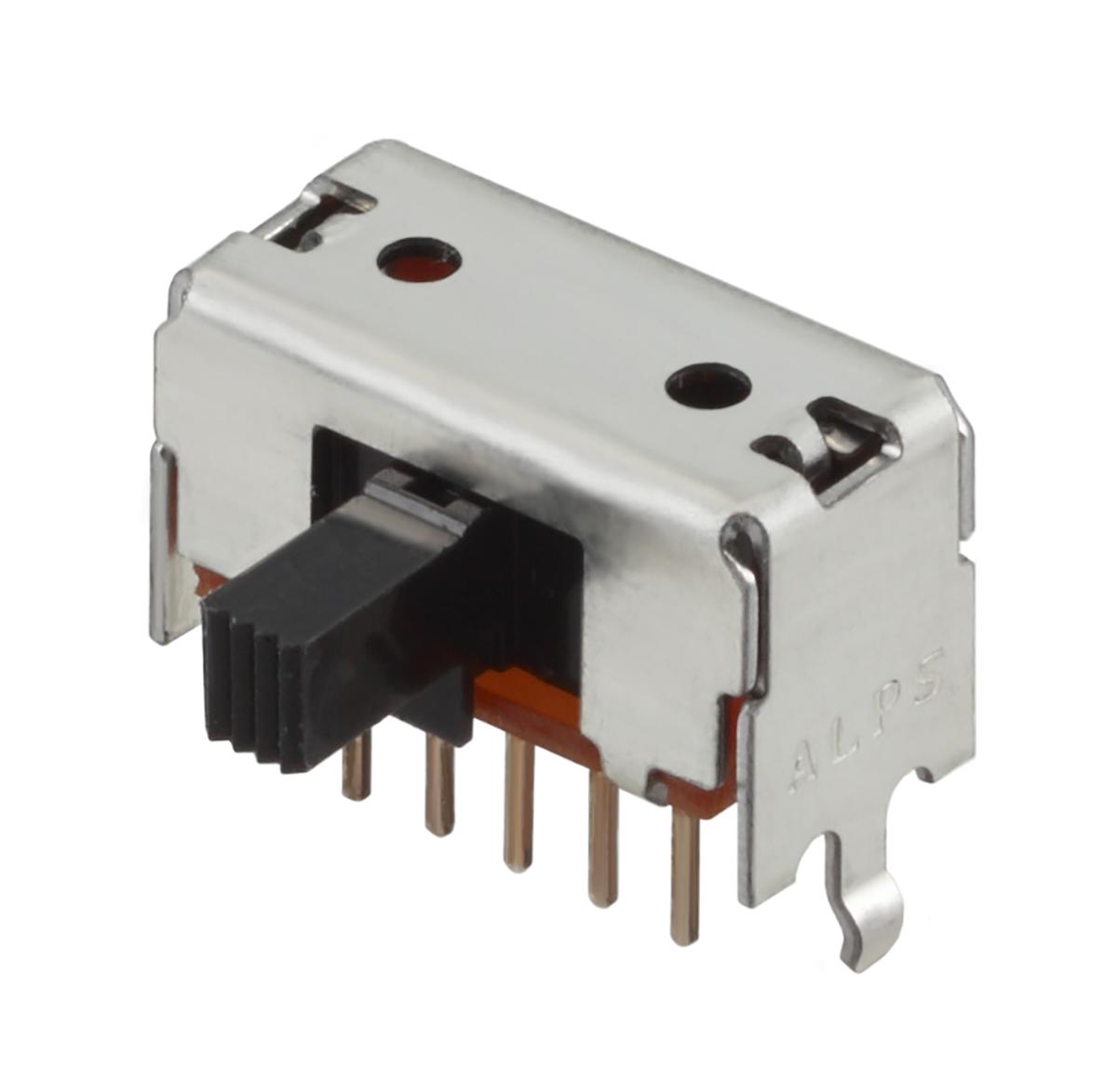 This is Through Hole Slide Switch SP3T Latching 100 mA Slide manufactured by Alps Alpine. The manufacturer part number is SSSF114900. It features a 25 (initial) mω, 65 (after lifetime) mω contact resistance. The given dimensions of the product include 14.5 x 13 x 8.5mm. The product is available in through hole configuration. Moreover, the product has a nominal 30v dc voltage rating. Its accurate length is 14.5mm. Furthermore, the product is 13mm wide. The product comes in 8.5mm depth. The product carries slide actuator. The product also provide mechanical stability with 10000cycles. It has a maximum operating temperature of +85°c. Whereas, the minimum operating temperature of the product is -40°c.
