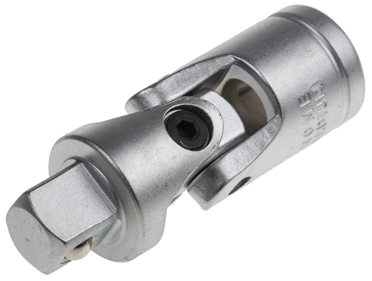This is 0.375 in Square Universal Joint manufactured by RS Pro. The manufacturer part number is 912-5385. A quality product with a nice mirror finish. The product is made from highly stable and reliable chrome vanadium steel. The product has a drive size of 3/8 in. It comes in joint configuration. The product features a square drive.