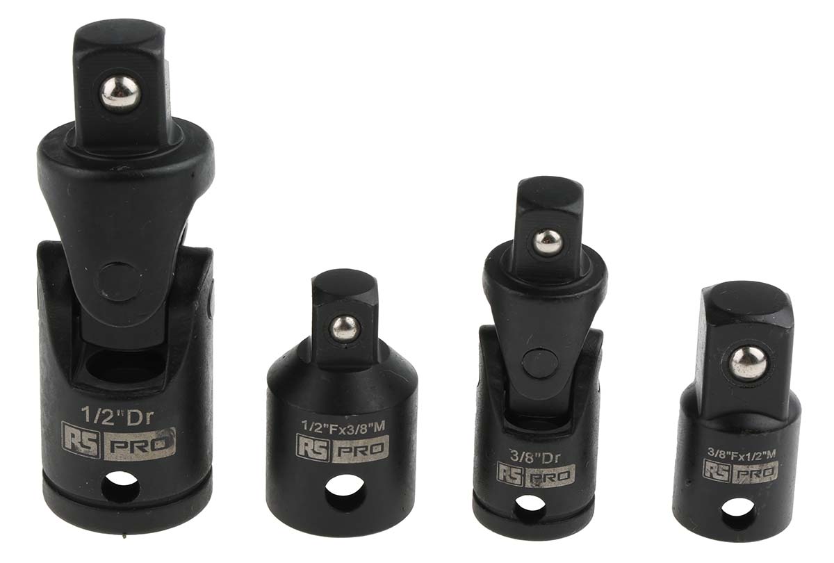 This is 6.35 mm 9.52 mm 12.7 mm Square Universal Adapter Set manufactured by RS Pro. The manufacturer part number is 125-0933. The product has a drive size of 1/4 in. The product features a square drive. A quality product with a nice blackened finish. It comes in adapter set configuration. The product is made from highly stable and reliable chrome vanadium steel.