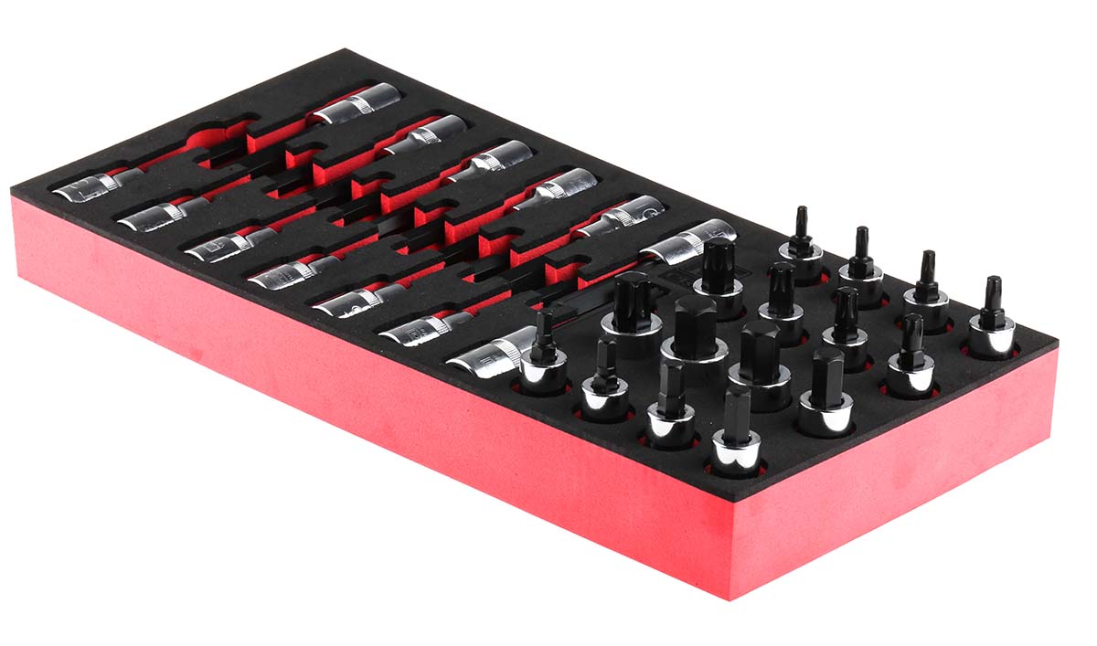 This is 29 Pieces Socket Set 1/2 in Square Drive manufactured by RS Pro. The manufacturer part number is 833-5957. A quality product with a nice chrome finish. The product features a square drive. The product is made from highly stable and reliable steel. The product has a drive size of 1/2 in.