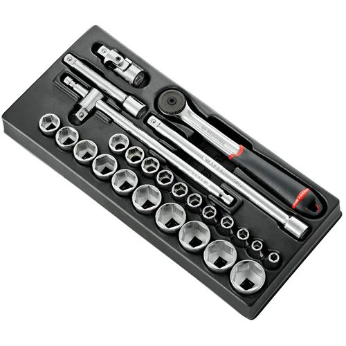 This is 26 Piece 1/2 in Socket Set manufactured by Facom. The manufacturer part number is MOD.S161-46. The product has a drive size of 1/2 in. The product features a square drive.