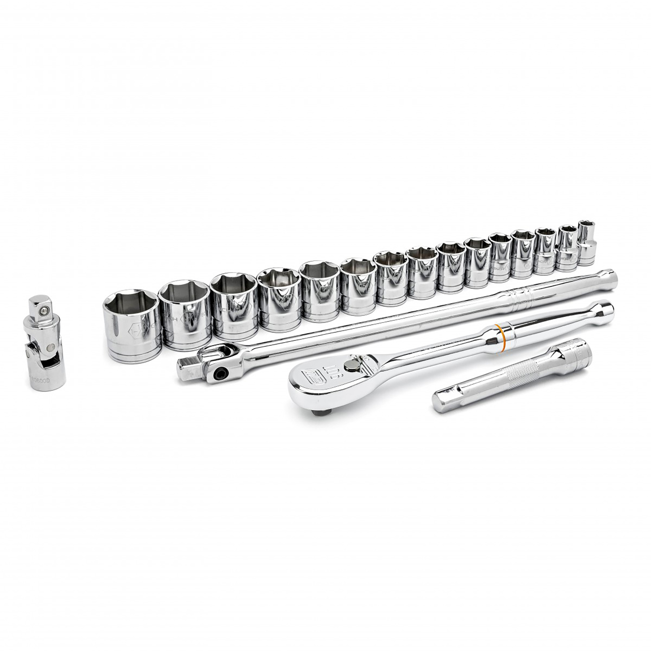 This is 19 Piece 1/2 in Socket Set manufactured by GearWrench. The manufacturer part number is 80791. A quality product with a nice chrome finish. The product features a square drive. The product is made from highly stable and reliable alloy steel. The product has a drive size of 1/2 in.