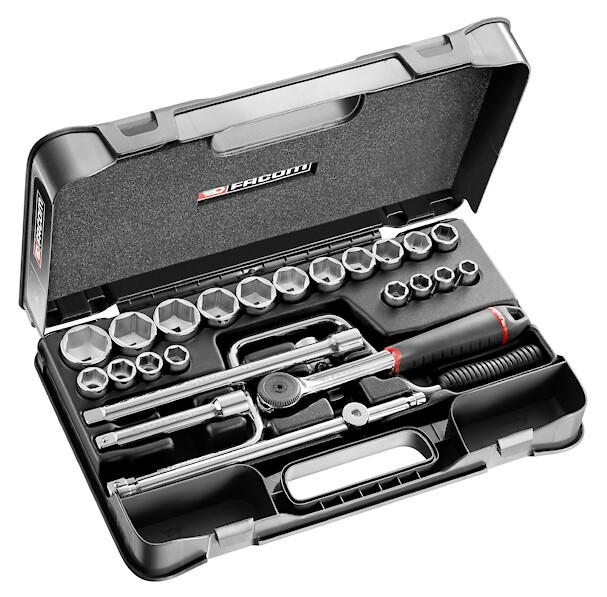 This is 25 Piece 1/2 in Ratchet Socket Set manufactured by Facom. The manufacturer part number is S.161-3P6U. The product has a drive size of 1/2 in. The product features a 6 point socket drive.