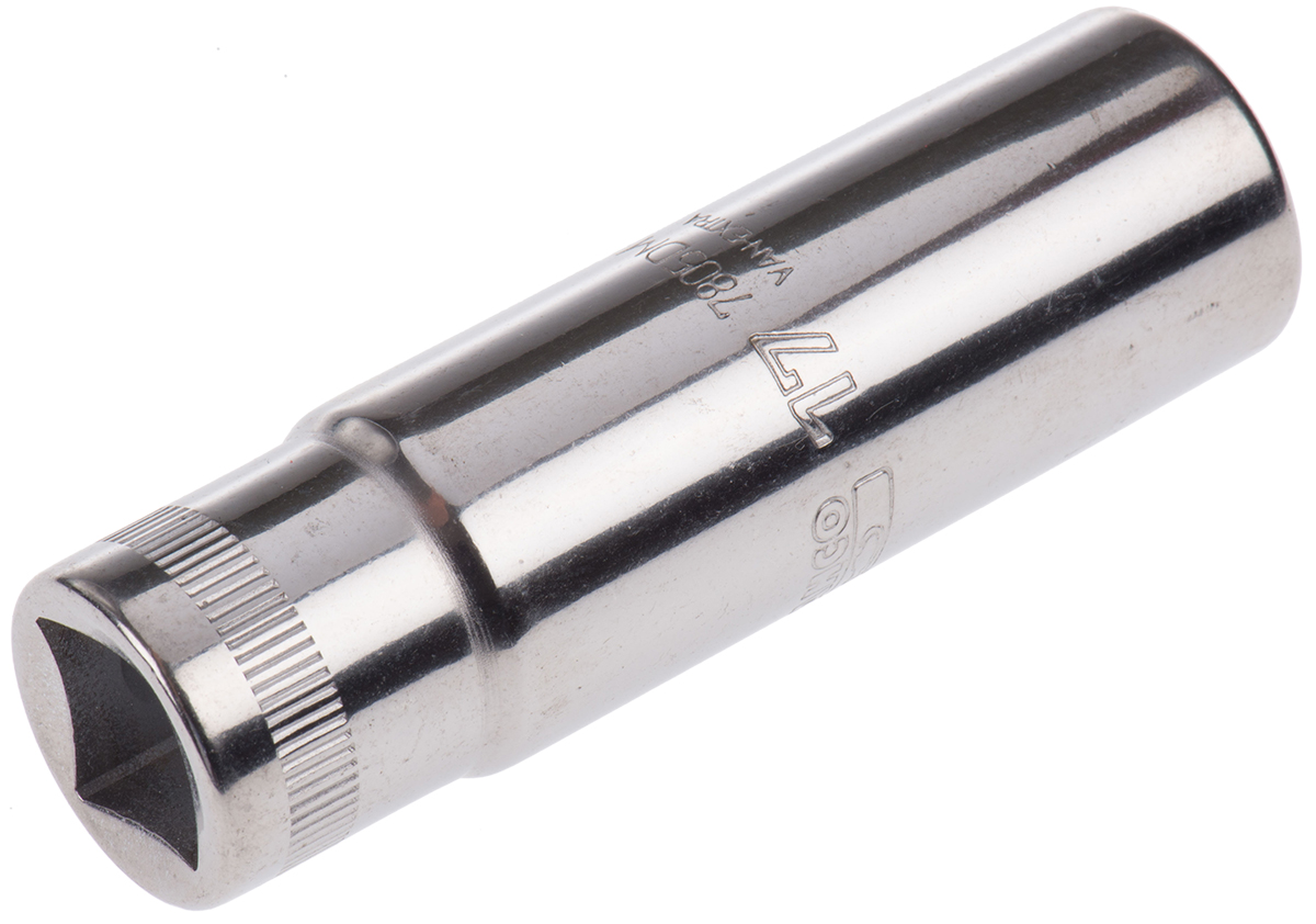 This is 17mm with 1/2 in Drive Deep Socket Bi-Hex; Deep 82.6 mm manufactured by Bahco. The manufacturer part number is 7805DM-17. A quality product with a nice nickel chrome plated finish. The product is made from highly stable and reliable chrome extra. The product has a drive size of 1/2 in. The product features a square drive.