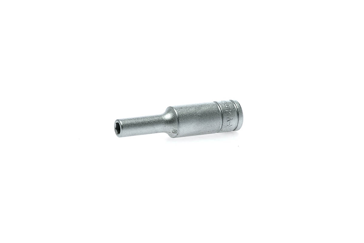 This is 4mm Deep Socket With 6.35 mm Drive Length 49.5 mm manufactured by Teng Tools. The manufacturer part number is M140604-C. The product has a drive size of 1/4 in.