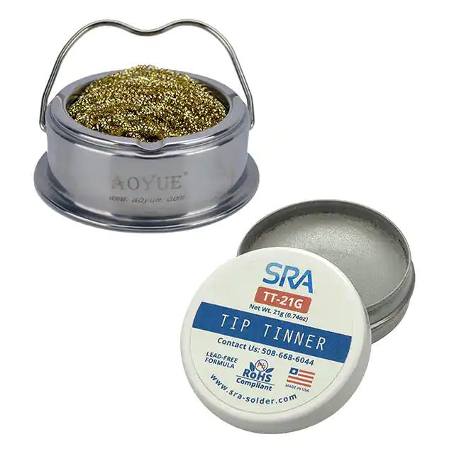 This is manufactured by SRA Soldering Products. The manufacturer part number is TTKIT. It is assigned with possible HTSUS value of 8515.90.4000. It is shipped in bag. Specifications include holder included, metal brass wool, tip tinner (activated). The product is rohs compliant. In addition, it is reach unaffected. Its typical moisture sensitivity level is 1 (unlimited). The product is suitable for use with soldering irons, workstands. It has a long 2 weeks standard lead time. The product is designated with the ear99 code number It comes in tip maintenance kit configuration.