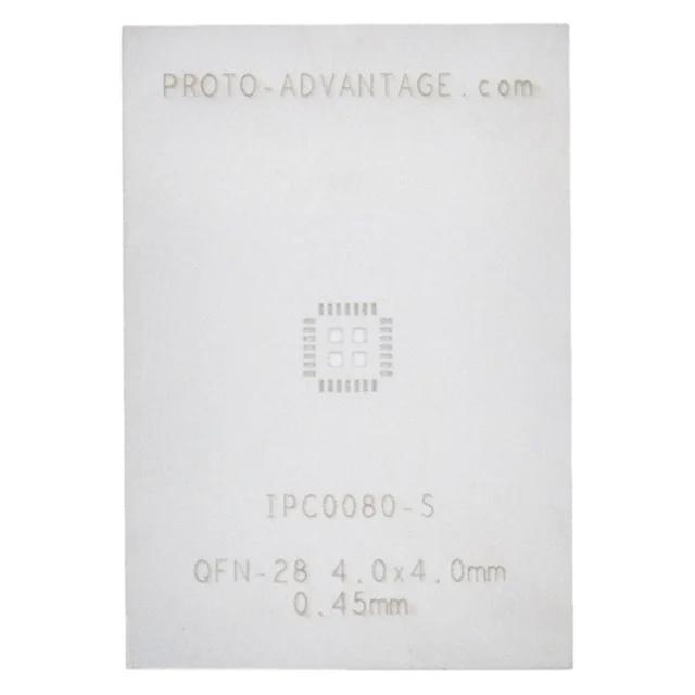 This is manufactured by Chip Quik Inc.. The manufacturer part number is IPC0080-S. The product is made from highly stable and reliable stainless steel. It is assigned with possible HTSUS value of 7218.10.0000. The product is rohs3 compliant. It is 0.0040" (0.102mm) thick. It comes in qfn/lfcsp configuration. The product carries possible position value of 28. In addition, it is reach unaffected. It is shipped in bulk. Its typical moisture sensitivity level is 1 (unlimited). The product proto-advantage ipc, is a highly preferred choice for users. Moreover, the product is 0.018" (0.45mm) The product is designated with the ear99 code number