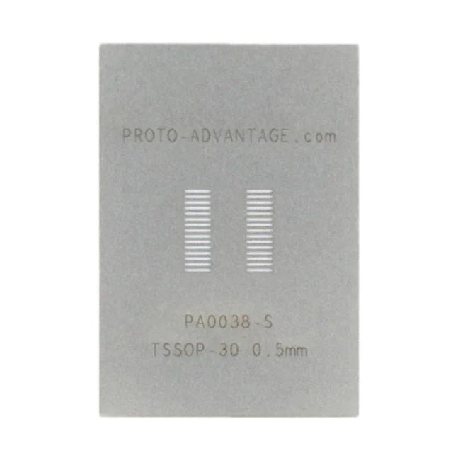 This is manufactured by Chip Quik Inc.. The manufacturer part number is PA0038-S. The product is made from highly stable and reliable stainless steel. It is assigned with possible HTSUS value of 7218.10.0000. The product is rohs3 compliant. It is 0.0040" (0.102mm) thick. It comes in tssop configuration. The product carries possible position value of 30. In addition, it is reach unaffected. It is shipped in bulk. Its typical moisture sensitivity level is 1 (unlimited). The product proto-advantage pa, is a highly preferred choice for users. Moreover, the product is 0.020" (0.50mm) The product is designated with the ear99 code number