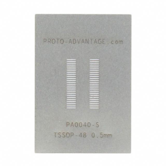 This is manufactured by Chip Quik Inc.. The manufacturer part number is PA0040-S. The product is made from highly stable and reliable stainless steel. It is assigned with possible HTSUS value of 7218.10.0000. The product is rohs3 compliant. It is 0.0040" (0.102mm) thick. It comes in tssop configuration. The product carries possible position value of 48. In addition, it is reach unaffected. It is shipped in bulk. Its typical moisture sensitivity level is 1 (unlimited). The product proto-advantage pa, is a highly preferred choice for users. Moreover, the product is 0.020" (0.50mm) The product is designated with the ear99 code number