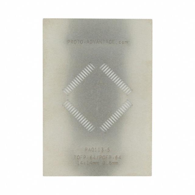 This is manufactured by Chip Quik Inc.. The manufacturer part number is PA0113-S. The product is made from highly stable and reliable stainless steel. It is assigned with possible HTSUS value of 7218.10.0000. The product is rohs3 compliant. It is 0.0040" (0.102mm) thick. It comes in tqfp configuration. The product carries possible position value of 64. In addition, it is reach unaffected. It is shipped in bulk. Its typical moisture sensitivity level is 1 (unlimited). It has a long 2 weeks standard lead time. The product proto-advantage pa, is a highly preferred choice for users. Moreover, the product is 0.031" (0.80mm) The product is designated with the ear99 code number