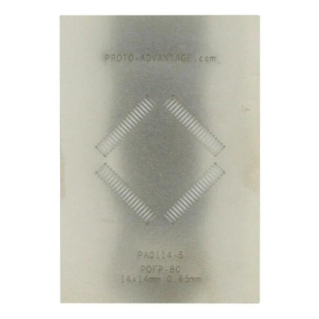 This is manufactured by Chip Quik Inc.. The manufacturer part number is PA0114-S. The product is made from highly stable and reliable stainless steel. It is assigned with possible HTSUS value of 7218.10.0000. The product is rohs3 compliant. It is 0.0040" (0.102mm) thick. It comes in pqfp configuration. The product carries possible position value of 80. In addition, it is reach unaffected. It is shipped in bulk. Its typical moisture sensitivity level is 1 (unlimited). The product proto-advantage pa, is a highly preferred choice for users. Moreover, the product is 0.026" (0.65mm) The product is designated with the ear99 code number