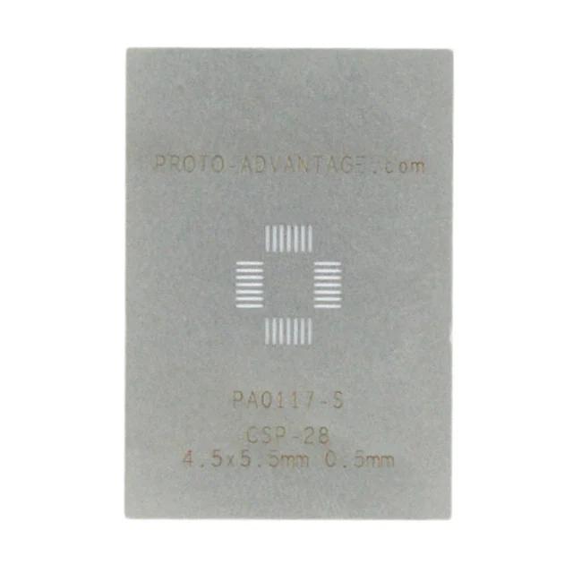 This is manufactured by Chip Quik Inc.. The manufacturer part number is PA0117-S. The product is made from highly stable and reliable stainless steel. It is assigned with possible HTSUS value of 7218.10.0000. The product is rohs3 compliant. It is 0.0040" (0.102mm) thick. It comes in csp configuration. The product carries possible position value of 28. In addition, it is reach unaffected. It is shipped in bulk. Its typical moisture sensitivity level is 1 (unlimited). The product proto-advantage pa, is a highly preferred choice for users. Moreover, the product is 0.020" (0.50mm) The product is designated with the ear99 code number