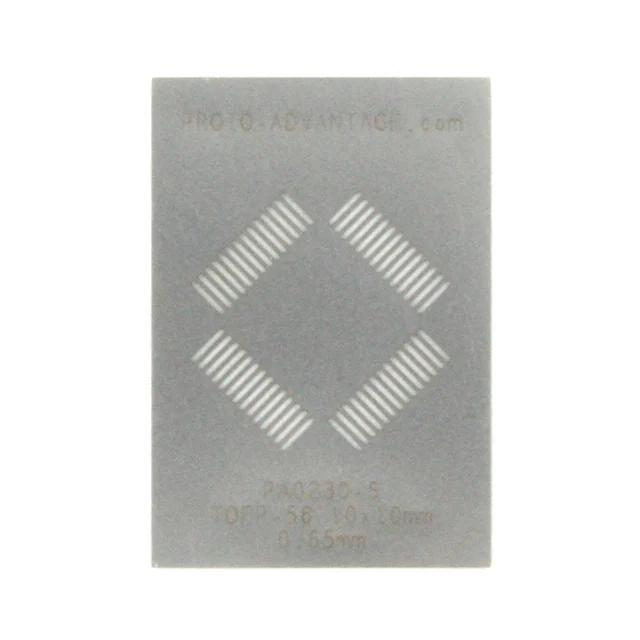 This is manufactured by Chip Quik Inc.. The manufacturer part number is PA0230-S. The product is made from highly stable and reliable stainless steel. It is assigned with possible HTSUS value of 7218.10.0000. The product is rohs3 compliant. It is 0.0040" (0.102mm) thick. It comes in tqfp configuration. The product carries possible position value of 56. In addition, it is reach unaffected. It is shipped in bulk. Its typical moisture sensitivity level is 1 (unlimited). The product proto-advantage pa, is a highly preferred choice for users. Moreover, the product is 0.026" (0.65mm) The product is designated with the ear99 code number
