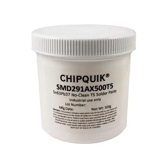 This is manufactured by Chip Quik Inc.. The manufacturer part number is SMD291AX500T5. It is assigned with possible HTSUS value of 3810.10.0000. The product is rohs3 compliant. The product is highly reliable with a long-lasting period of 12 months. It comes in solder paste configuration. It is composed of sn63pb37 (63/37). The product is designed as a nice jar, 17.64 oz (500g). In addition, it is reach unaffected. Its warranty starts from date of manufacture. It offers storage features at 37°f ~ 46°f (3°c ~ 8°c). It is shipped in jar. Its typical moisture sensitivity level is not applicable. Shipping Information: ships with cold pack. to ensure customer satisfaction and product integrity, air shipment is recommended.. Moreover, it corresponds to smd291, a base product number of the product. The product is designated with the ear99 code number