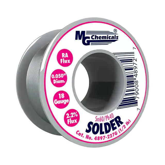This is manufactured by MG Chemicals. The manufacturer part number is 4897-227G. It is assigned with possible HTSUS value of 8311.30.3000. The product is rohs non-compliant. The product is highly reliable with a long-lasting period of 60 months. It comes in wire solder configuration. It is composed of sn60pb40 (60/40). The product is designed as a nice spool, 8 oz (227g), 1/2 lb. In addition, it is reach affected. It is shipped in spool. Moreover, the product has a wire gauge of 16 awg, 18 swg. Its typical moisture sensitivity level is not applicable. It has a long 2 weeks standard lead time. Its diameter is 0.050" (1.27mm). The typical product's weight is 0.5 lb (226.8 g). The product 4890, is a highly preferred choice for users. Moreover, it corresponds to 4897, a base product number of the product. The product is designated with the ear99 code number