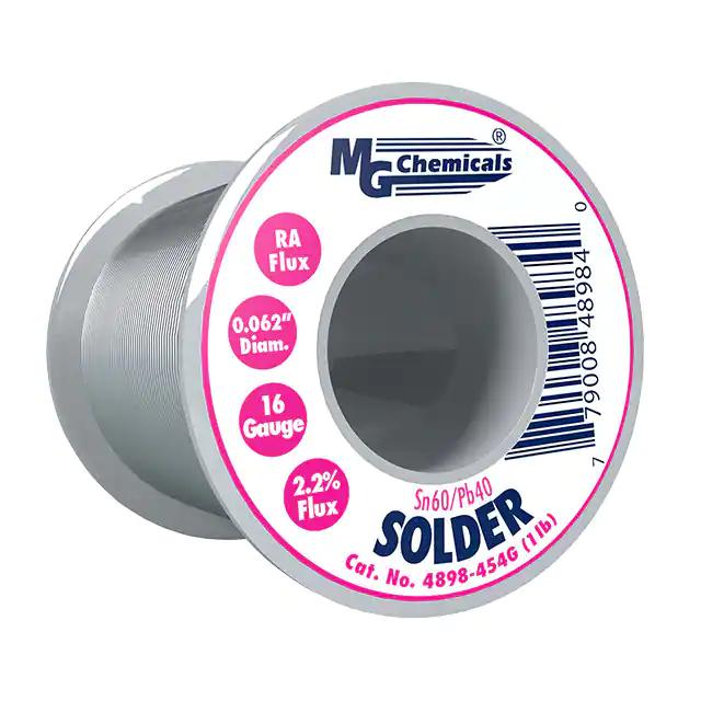 This is manufactured by MG Chemicals. The manufacturer part number is 4898-454G. It is assigned with possible HTSUS value of 8311.30.3000. The product is rohs non-compliant. The product is highly reliable with a long-lasting period of 60 months. It comes in wire solder configuration. It is composed of sn60pb40 (60/40). The product is designed as a nice spool, 1 lb (454 g). In addition, it is reach affected. It is shipped in spool. Moreover, the product has a wire gauge of 14 awg, 16 swg. Its typical moisture sensitivity level is not applicable. It has a long 2 weeks standard lead time. Its diameter is 0.062" (1.57mm). The typical product's weight is 1 lb (453.59 g). The product 4890, is a highly preferred choice for users. Moreover, it corresponds to 4898, a base product number of the product. The product is designated with the ear99 code number