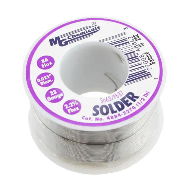This is manufactured by MG Chemicals. The manufacturer part number is 4884-227G. It is assigned with possible HTSUS value of 8311.30.3000. The product is rohs non-compliant. The product is highly reliable with a long-lasting period of 60 months. It comes in wire solder configuration. It is composed of sn63pb37 (63/37). The product is designed as a nice spool, 8 oz (227g), 1/2 lb. In addition, it is reach affected. It is shipped in spool. Moreover, the product has a wire gauge of 22 awg, 23 swg. Its typical moisture sensitivity level is not applicable. It has a long 2 weeks standard lead time. Its diameter is 0.025" (0.64mm). The typical product's weight is 0.5 lb (226.8 g). The product 4880, is a highly preferred choice for users. Moreover, it corresponds to 4884, a base product number of the product. The product is designated with the ear99 code number