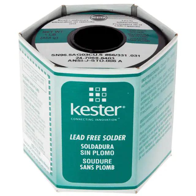 This is manufactured by Kester Solder. The manufacturer part number is 24-7068-6403. It is assigned with possible HTSUS value of 8311.30.3000. The product is rohs3 compliant. The product is highly reliable with a long-lasting period of 36 months. It comes in wire solder configuration. It is composed of sn96.5ag3cu0.5 (96.5/3/0.5). The product is designed as a nice spool, 1 lb (454 g). In addition, it is reach unaffected. Its warranty starts from date of manufacture. It offers storage features at 50°f ~ 104°f (10°c ~ 40°c). It is shipped in spool. Moreover, the product has a wire gauge of 20 awg, 22 swg. Its typical moisture sensitivity level is not applicable. It has a long 5 weeks standard lead time. Its diameter is 0.031" (0.79mm). The typical product's weight is 1 lb (453.59 g). The product 331, is a highly preferred choice for users. Moreover, it corresponds to 24-7068, a base product number of the product. The product is designated with the ear99 code number
