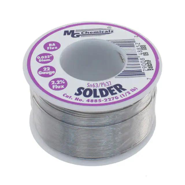 This is manufactured by MG Chemicals. The manufacturer part number is 4885-227G. It is assigned with possible HTSUS value of 8311.30.3000. The product is rohs non-compliant. The product is highly reliable with a long-lasting period of 60 months. It comes in wire solder configuration. It is composed of sn63pb37 (63/37). The product is designed as a nice spool, 8 oz (227g), 1/2 lb. In addition, it is reach affected. It is shipped in spool. Moreover, the product has a wire gauge of 20 awg, 21 swg. Its typical moisture sensitivity level is not applicable. It has a long 2 weeks standard lead time. Its diameter is 0.032" (0.81mm). The typical product's weight is 0.5 lb (226.8 g). The product 4880, is a highly preferred choice for users. Moreover, it corresponds to 4885, a base product number of the product. The product is designated with the ear99 code number