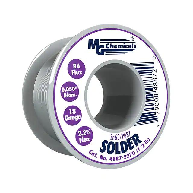 This is manufactured by MG Chemicals. The manufacturer part number is 4887-227G. It is assigned with possible HTSUS value of 8311.30.3000. The product is rohs non-compliant. The product is highly reliable with a long-lasting period of 60 months. It comes in wire solder configuration. It is composed of sn63pb37 (63/37). The product is designed as a nice spool, 8 oz (227g), 1/2 lb. In addition, it is reach affected. It is shipped in spool. Moreover, the product has a wire gauge of 16 awg, 18 swg. Its typical moisture sensitivity level is not applicable. It has a long 2 weeks standard lead time. Its diameter is 0.050" (1.27mm). The typical product's weight is 0.5 lb (226.8 g). The product 4880, is a highly preferred choice for users. Moreover, it corresponds to 4887, a base product number of the product. The product is designated with the ear99 code number