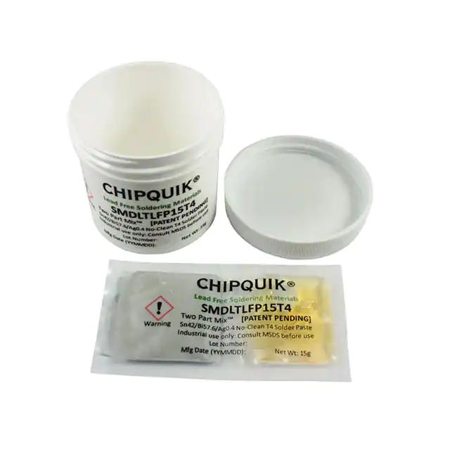 This is manufactured by Chip Quik Inc.. The manufacturer part number is SMDLTLFP15T4. It is assigned with possible HTSUS value of 3810.10.0000. The product is rohs3 compliant. The product is highly reliable with a long-lasting period of 24 months. It comes in solder paste, two part mix configuration. It is composed of bi57.6sn42ag0.4 (57.6/42/0.4). The product is designed as a nice jar, 0.53 oz (15g). In addition, it is reach unaffected. Its warranty starts from date of manufacture. It offers storage features at 37°f ~ 77°f (3°c ~ 25°c). It is shipped in jar. Its typical moisture sensitivity level is not applicable. It has a long 4 weeks standard lead time. Moreover, it corresponds to smdltl, a base product number of the product. The product is designated with the ear99 code number