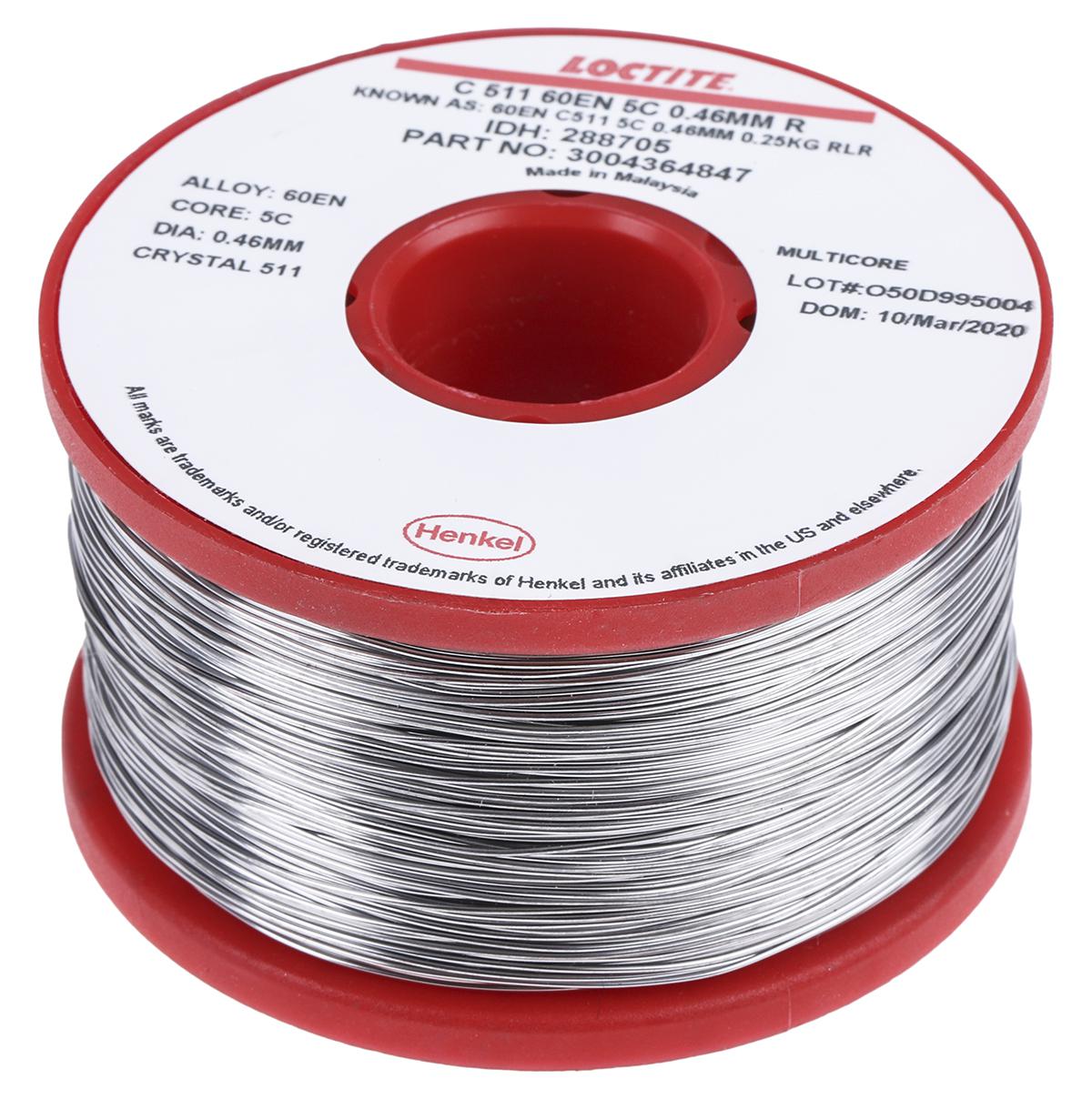 This is 0.5mm Wire Lead solder +183 → +188°C Melting Point 40% Lead 60% Tin 250g manufactured by Multicore. The manufacturer part number is 288705.