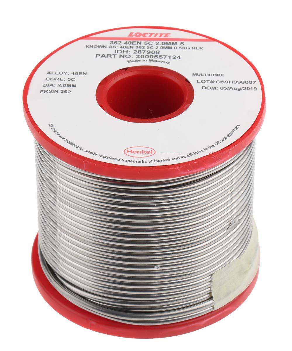 This is 2.03mm Wire Lead solder +183 → +234°C Melting Point 50 → 60% Lead 30 → 40% Tin 500g manufactured by Multicore. The manufacturer part number is 287908.