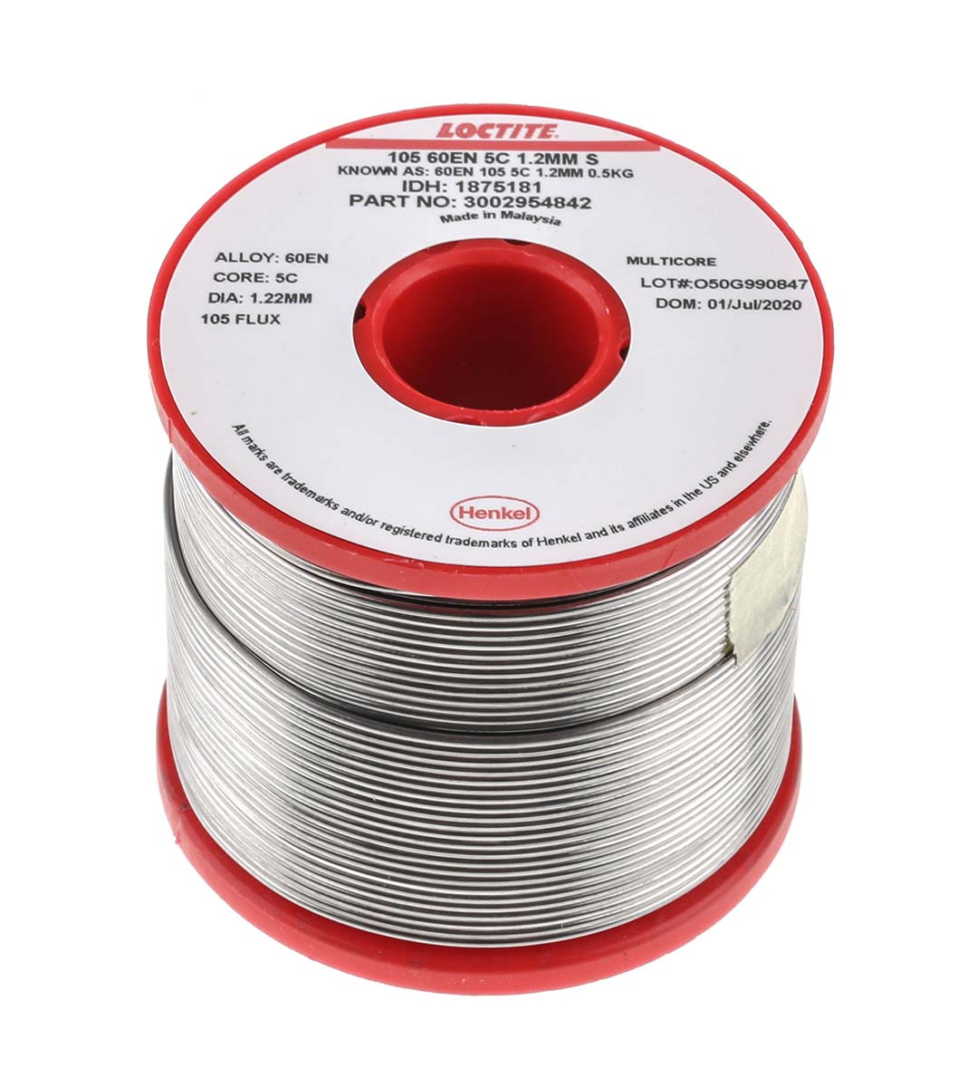 This is 1.2mm Wire Lead solder 183 → 188°C Melting Point 40% Lead 60% Tin 500g manufactured by Multicore. The manufacturer part number is 1875181.