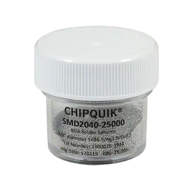 This is manufactured by Chip Quik Inc.. The manufacturer part number is SMD2040-25000. It is assigned with possible HTSUS value of 8311.30.6000. The product is rohs3 compliant. The product is highly reliable with a long-lasting period of 24 months. It comes in solder sphere configuration. It is composed of sn96.5ag3cu0.5 (96.5/3/0.5). The product is designed as a nice jar. In addition, it is reach unaffected. Its warranty starts from date of manufacture. It is shipped in jar. Its typical moisture sensitivity level is not applicable. It has a long 3 weeks standard lead time. Its diameter is 0.020" (0.51mm). The product smd2, is a highly preferred choice for users. The product is designated with the ear99 code number