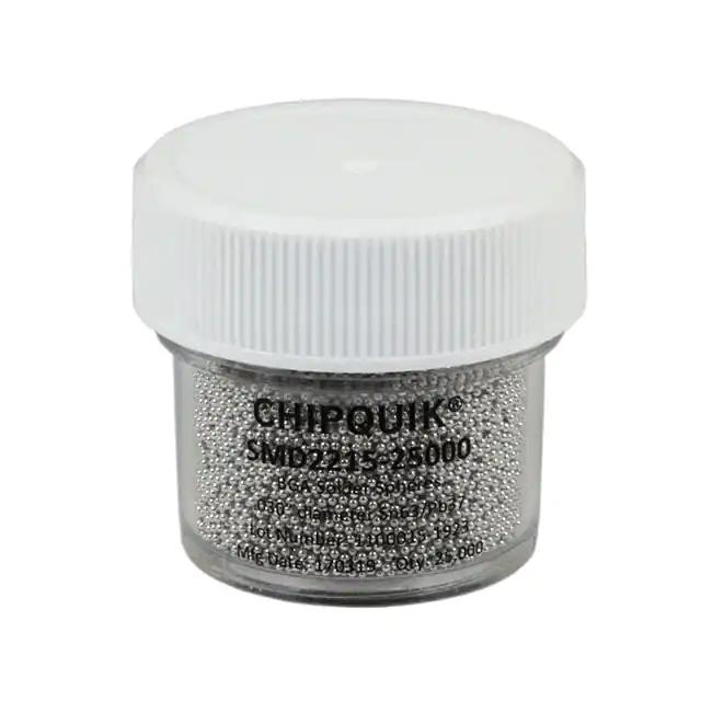 This is manufactured by Chip Quik Inc.. The manufacturer part number is SMD2215-25000. It is assigned with possible HTSUS value of 8311.30.3000. The product is rohs non-compliant. The product is highly reliable with a long-lasting period of 24 months. It comes in solder sphere configuration. It is composed of sn63pb37 (63/37). The product is designed as a nice jar. In addition, it is reach unaffected. Its warranty starts from date of manufacture. It is shipped in jar. Its typical moisture sensitivity level is not applicable. It has a long 3 weeks standard lead time. Its diameter is 0.030" (0.76mm). The product smd2, is a highly preferred choice for users. The product is designated with the ear99 code number
