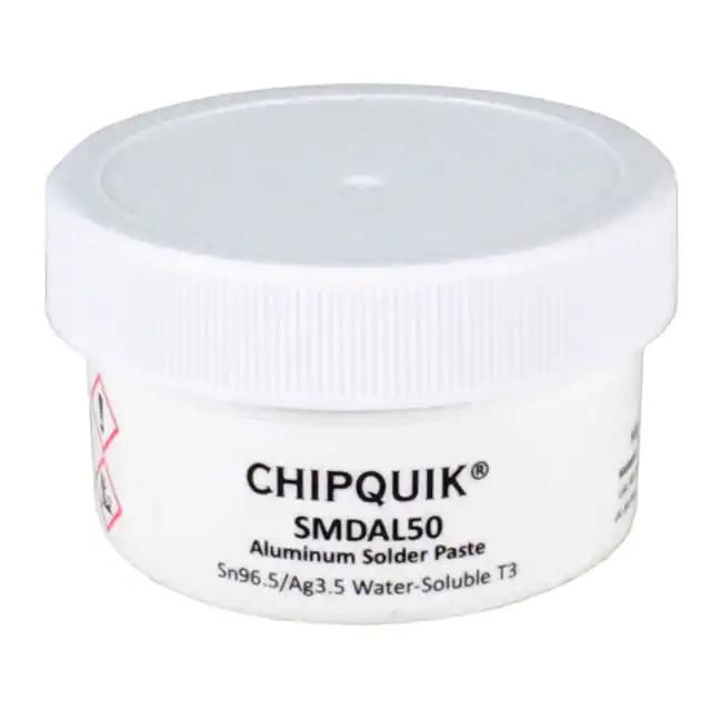 This is manufactured by Chip Quik Inc.. The manufacturer part number is SMDAL50. It is assigned with possible HTSUS value of 8311.90.0000. The product is rohs3 compliant. The product is highly reliable with a long-lasting period of 12 months. It comes in solder paste configuration. It is composed of sn96.5ag3.5 (96.5/3.5). The product is designed as a nice jar, 1.76 oz (50g). In addition, it is reach unaffected. Its warranty starts from date of manufacture. It offers storage features at 37°f ~ 46°f (3°c ~ 8°c). It is shipped in bulk. Its typical moisture sensitivity level is 1 (unlimited). It has a long 4 weeks standard lead time. The product smd, is a highly preferred choice for users. Moreover, it corresponds to smdal, a base product number of the product. The product is designated with the ear99 code number