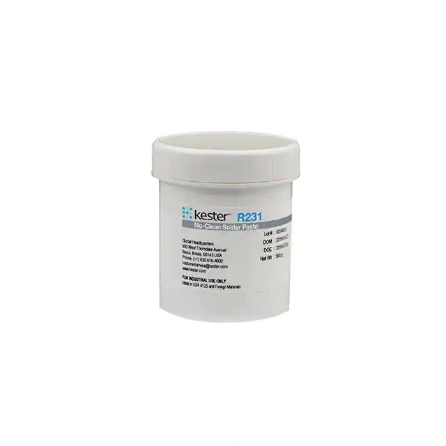 This is manufactured by Kester Solder. The manufacturer part number is 70-1302-0510. It is assigned with possible HTSUS value of 8311.90.0000. The product is rohs non-compliant. The product is highly reliable with a long-lasting period of 4 months. It comes in solder paste configuration. It is composed of sn63pb37 (63/37). The product is designed as a nice jar, 17.64 oz (500g). In addition, it is reach unaffected. Its warranty starts from date of manufacture. It offers storage features at 32°f ~ 50°f (0°c ~ 10°c). It is shipped in bulk. Its typical moisture sensitivity level is 1 (unlimited). It has a long 5 weeks standard lead time. Shipping Information: ships with cold pack. to ensure customer satisfaction and product integrity, air shipment is recommended.. The product r231, is a highly preferred choice for users. Moreover, it corresponds to 70-1302, a base product number of the product. The product is designated with the ear99 code number