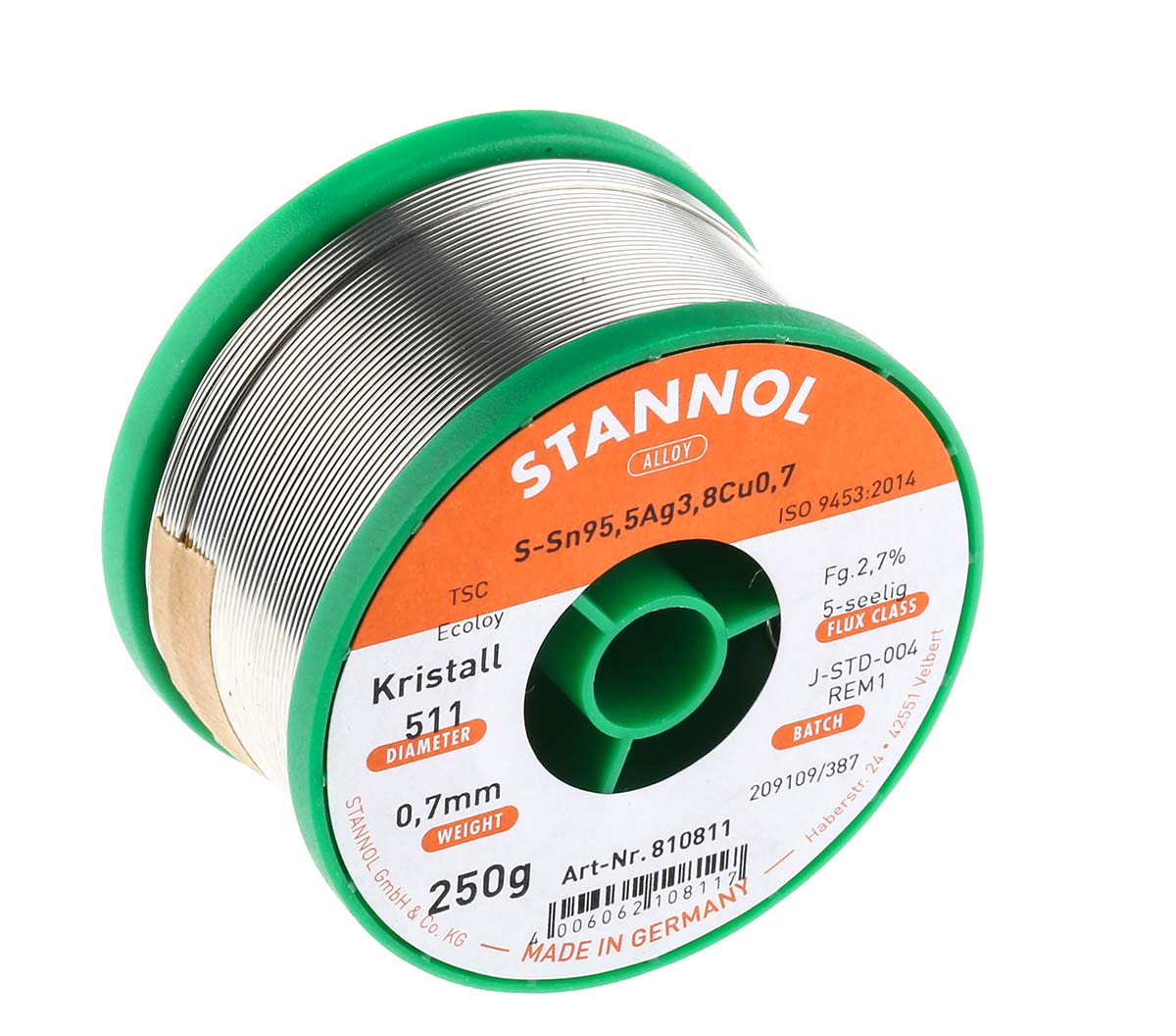 This is 0.7mm Wire Lead solder 217°C Melting Point manufactured by Stannol. The manufacturer part number is 810811.