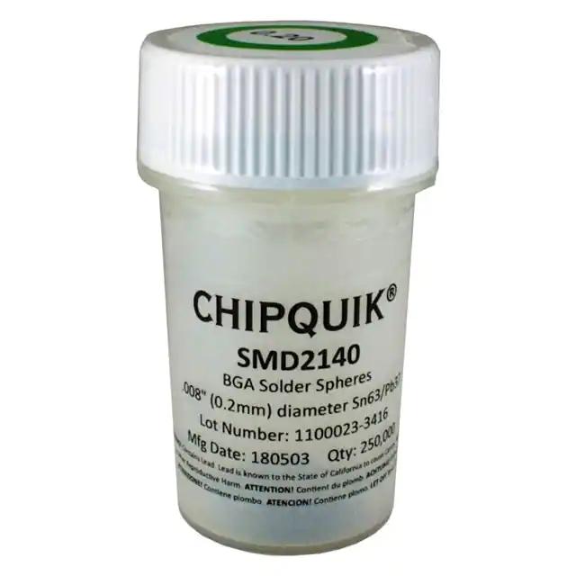 This is manufactured by Chip Quik Inc.. The manufacturer part number is SMD2140. It is assigned with possible HTSUS value of 8311.90.0000. The product is rohs non-compliant. The product is highly reliable with a long-lasting period of 24 months. It comes in solder sphere configuration. It is composed of sn63pb37 (63/37). The product is designed as a nice jar. In addition, it is reach affected. Its warranty starts from date of manufacture. It is shipped in bulk. Its typical moisture sensitivity level is not applicable. It has a long 3 weeks standard lead time. Its diameter is 0.008" (0.20mm). The product smd2, is a highly preferred choice for users. The product is designated with the ear99 code number