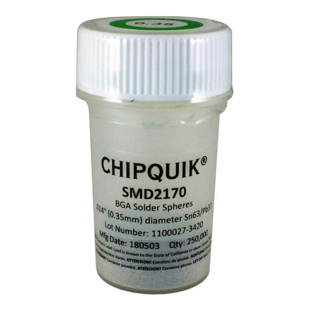 This is manufactured by Chip Quik Inc.. The manufacturer part number is SMD2170. It is assigned with possible HTSUS value of 8311.90.0000. The product is rohs non-compliant. The product is highly reliable with a long-lasting period of 24 months. It comes in solder sphere configuration. It is composed of sn63pb37 (63/37). The product is designed as a nice jar. In addition, it is reach affected. Its warranty starts from date of manufacture. It is shipped in bulk. Its typical moisture sensitivity level is not applicable. It has a long 3 weeks standard lead time. Its diameter is 0.014" (0.36mm). The product smd2, is a highly preferred choice for users. The product is designated with the ear99 code number