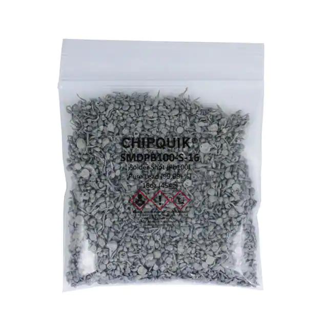 This is manufactured by Chip Quik Inc.. The manufacturer part number is SMDPB100-S-16. It is assigned with possible HTSUS value of 8311.90.0000. The product is rohs non-compliant. It comes in solder shot configuration. It is composed of pb100(100). The product is designed as a nice bag, 1 lb (454g). In addition, it is reach affected. It is shipped in bulk. Its typical moisture sensitivity level is not applicable. It has a long 4 weeks standard lead time. The product smd, is a highly preferred choice for users. Moreover, it corresponds to smdpb, a base product number of the product. The product is designated with the ear99 code number