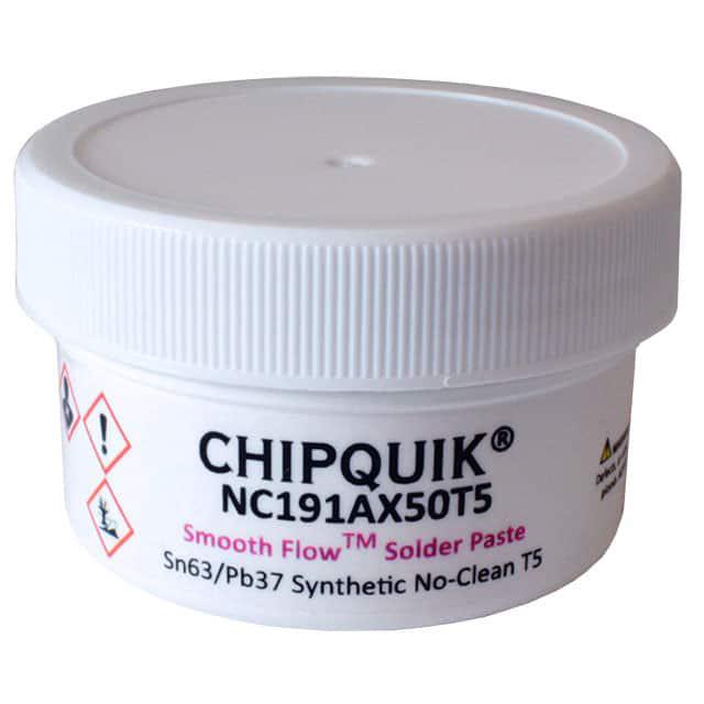 This is manufactured by Chip Quik Inc.. The manufacturer part number is NC191AX50T5. It is assigned with possible HTSUS value of 3810.10.0000. The product is rohs non-compliant. The product is highly reliable with a long-lasting period of 12 months. It comes in solder paste configuration. It is composed of sn63pb37 (63/37). The product is designed as a nice jar, 1.76 oz (50g). In addition, it is reach affected. Its warranty starts from date of manufacture. It offers storage features at 37°f ~ 46°f (3°c ~ 8°c). It is shipped in bulk. Its typical moisture sensitivity level is 1 (unlimited). It has a long 4 weeks standard lead time. The product smooth flow™, is a highly preferred choice for users. Moreover, it corresponds to nc191, a base product number of the product. The product is designated with the ear99 code number