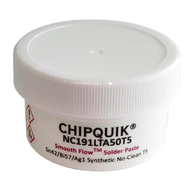 This is manufactured by Chip Quik Inc.. The manufacturer part number is NC191LTA50T5. It is assigned with possible HTSUS value of 3810.10.0000. The product is rohs3 compliant. The product is highly reliable with a long-lasting period of 12 months. It comes in solder paste configuration. It is composed of bi57sn42ag1 (57/42/1). The product is designed as a nice jar, 1.76 oz (50g). In addition, it is reach unaffected. Its warranty starts from date of manufacture. It offers storage features at 37°f ~ 46°f (3°c ~ 8°c). It is shipped in bulk. Its typical moisture sensitivity level is 1 (unlimited). It has a long 4 weeks standard lead time. The product smooth flow™, is a highly preferred choice for users. Moreover, it corresponds to nc191, a base product number of the product. The product is designated with the ear99 code number