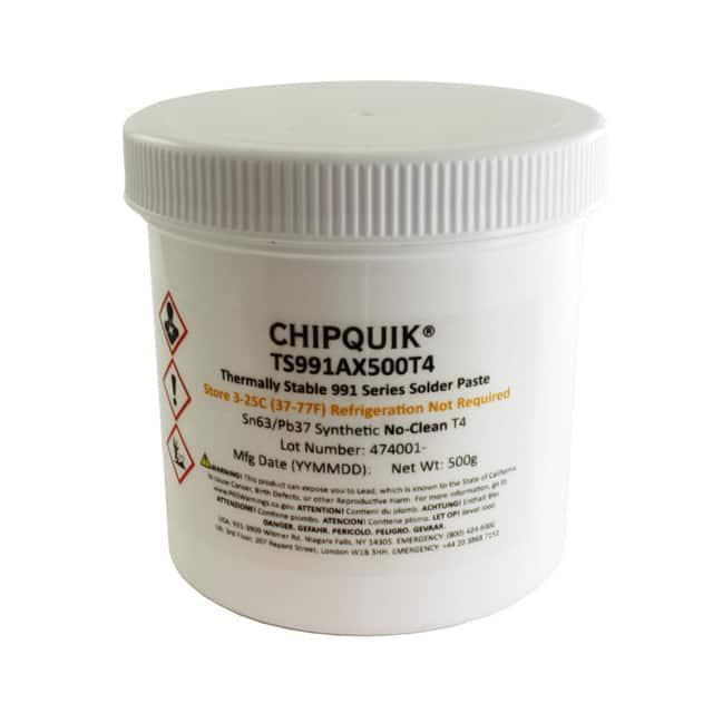 This is manufactured by Chip Quik Inc.. The manufacturer part number is TS991AX500T4. It is assigned with possible HTSUS value of 3810.10.0000. The product is rohs non-compliant. The product is highly reliable with a long-lasting period of 12 months. It comes in solder paste configuration. It is composed of sn63pb37 (63/37). The product is designed as a nice jar, 17.64 oz (500g). In addition, it is reach affected. Its warranty starts from date of manufacture. It is shipped in bulk. Its typical moisture sensitivity level is 1 (unlimited). It has a long 4 weeks standard lead time. The product chipquik®, is a highly preferred choice for users. Moreover, it corresponds to ts991a, a base product number of the product. The product is designated with the ear99 code number