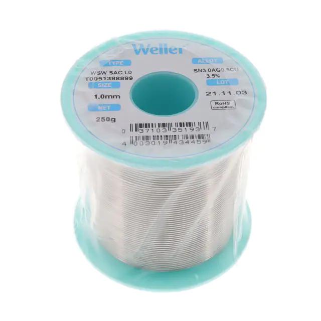 This is manufactured by Apex Tool Group. The manufacturer part number is T0051388899. It is assigned with possible HTSUS value of 8311.30.6000. It comes in wire solder configuration. It is composed of sn96.5ag3cu0.5 (96.5/3/0.5). The product is designed as a nice spool, 8.8 oz (250g). In addition, it is reach unaffected. It is shipped in spool. Its typical moisture sensitivity level is 1 (unlimited). It has a long 8 weeks standard lead time. Its diameter is 0.039" (0.99mm). The product weller®, is a highly preferred choice for users. The product is designated with the ear99 code number