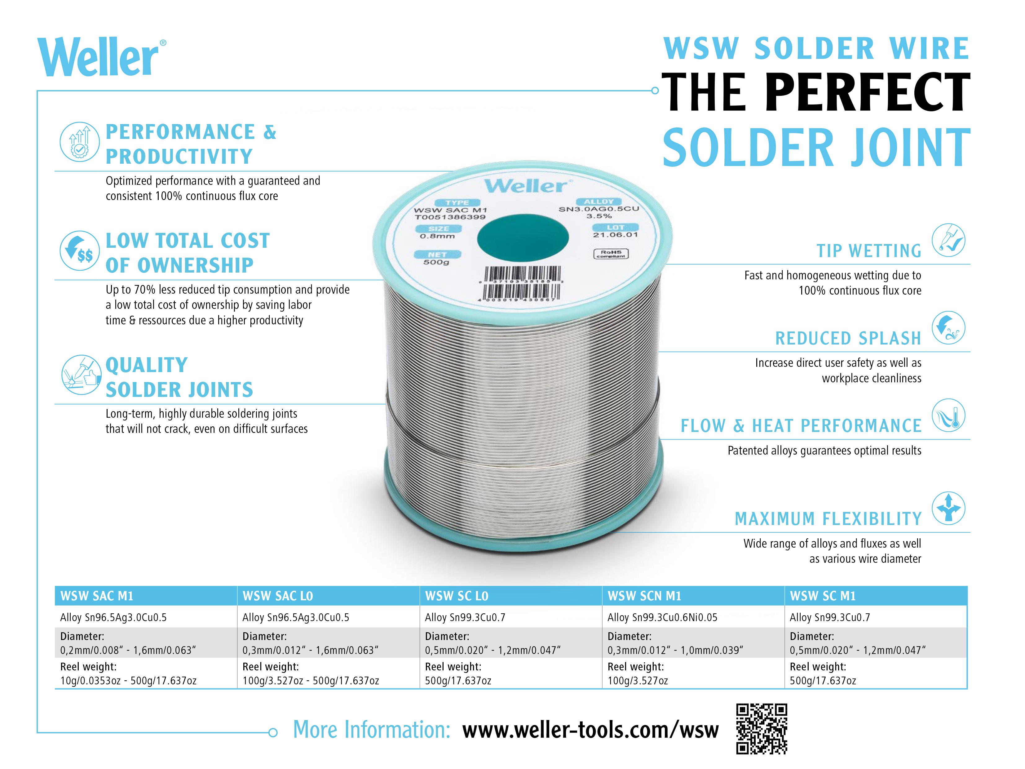 This is Wire 1.2mm Solder 227°C Melting Point manufactured by Weller. The manufacturer part number is T0051387799.