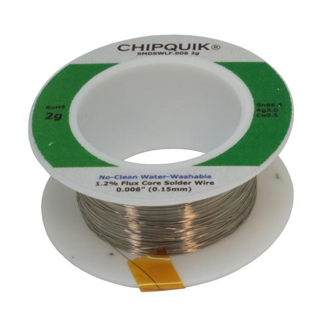 This is manufactured by Chip Quik Inc.. The manufacturer part number is SMDSWLF.006 2G. It is assigned with possible HTSUS value of 8311.30.6000. The product is rohs3 compliant. It comes in wire solder configuration. It is composed of sn96.5ag3cu0.5 (96.5/3/0.5). The product is designed as a nice spool, 0.07 oz (2g). In addition, it is reach unaffected. It is shipped in bulk. Its typical moisture sensitivity level is 1 (unlimited). It has a long 4 weeks standard lead time. Its diameter is 0.006" (0.15mm). The product is designated with the ear99 code number